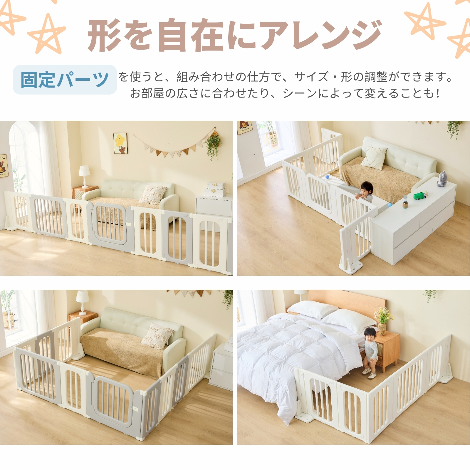 - 5waysベビーサークル:ベビーベッド、ベビーサークル、収納棚、キッズパーテーション、ベビーゲートへ