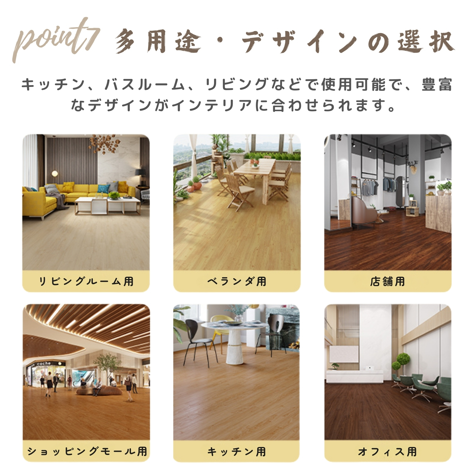 - フロア、キッチン、リビング、子供部屋、ダイニング、玄関、オフィス、店舗、カフェ、病院などが幅広く適用できます。